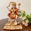 White Marble Lord Hanuman Sitting Statue with gada & Reading Book Decorative Showpiece
